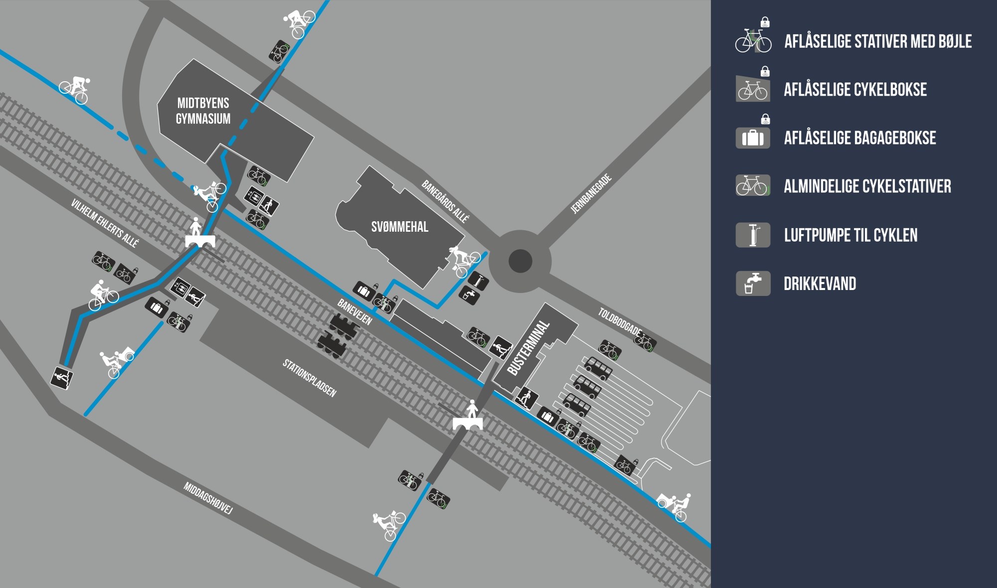 Der er opsat cykelparkering fire steder ved stationen og busterminalen i Viborg.